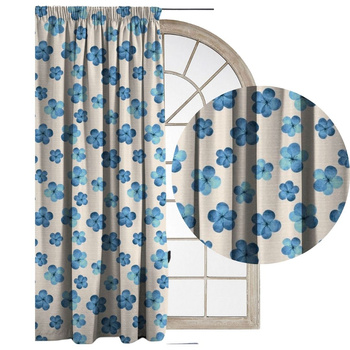 Zasłona Glam aksamitna welurowa ecru w malowane niebieskie kwiatki G27 welwet
