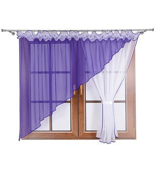 Firana dwukolorowa z woalu wiązana Lethien biało-ciemnofioletowa
