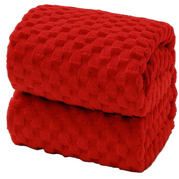 Gruby koc wytłaczany wzór efekt 3D narzuta pled na łóżko kanapę miękki czerwony