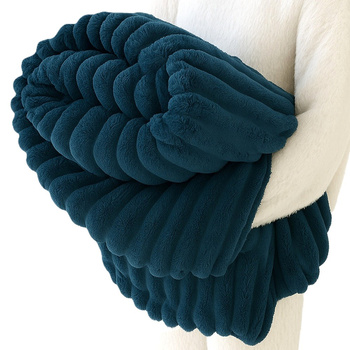 Puszysty gruby koc w prążki narzuta pled na łóżko wytłaczany miękki turkusowy premium