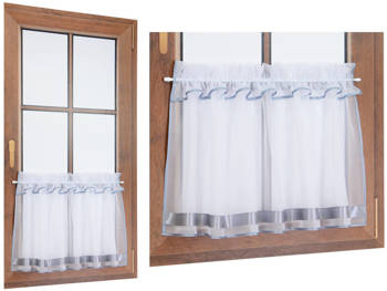 Firana duo z woalu i tkaniny w ażurowe listki Gina białe