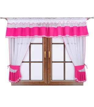 Komplet 2 firany z podwiązką i lambrekinem Lamia ciemny różowy