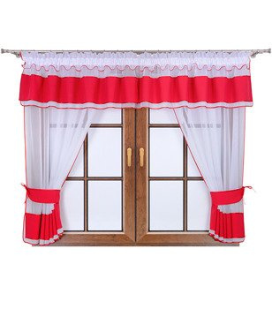 Komplet 2 firany z podwiązką i lambrekinem Lamia czerwony