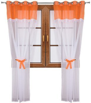 Wiązana firana duo pomarańczowa z woalu ozdobiona gipiurą Cudka