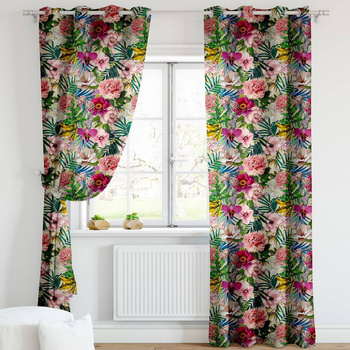 Komplet 2 firany z podwiązką i lambrekinem w kwiaty różowe tulipany Wenecja III