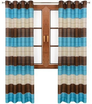 Elegancka zasłona w pasy brąz niebieski ecru wzór 14