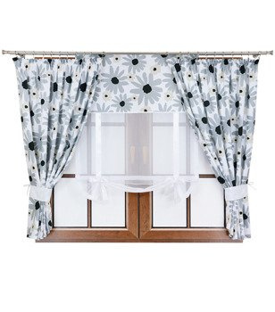 ( ilość produktów: 1014 )Komplet 2 zasłony szare kwiaty J1 panel z kokardkami Rubi IV