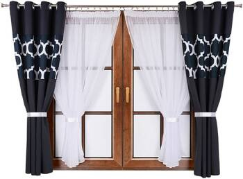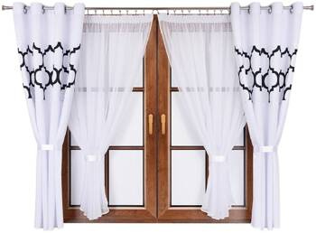 Stylowa zasłona duo biała z pasem na górze czarnym Massa