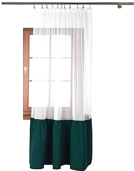 Firana duo z woalu Sevilla z ozdobną falbaną biało-zielona