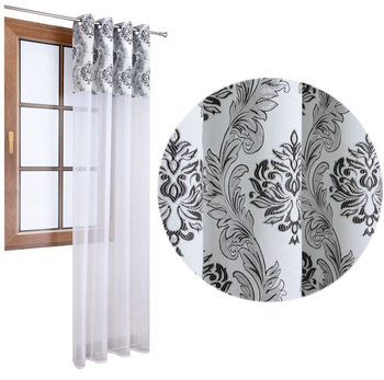 Firana duo z białego woalu i tkaniny w liście Rubi 3 wzór D1