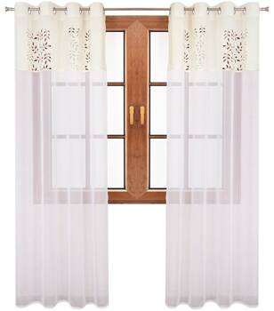 Firana duo z woalu i tkaniny w ażurowe listki Gina ecru