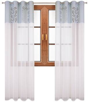 Firana duo z woalu i tkaniny w ażurowe listki Gina szara
