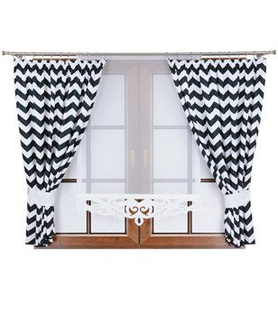 Komplet 2 zasłony czarne zygzaki B2 panel z ażurem Rubi V