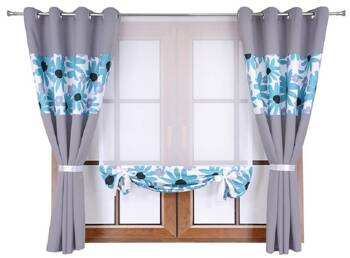 Komplet zasłony duo kwiaty szare J1 panel z woalu Cindy 5