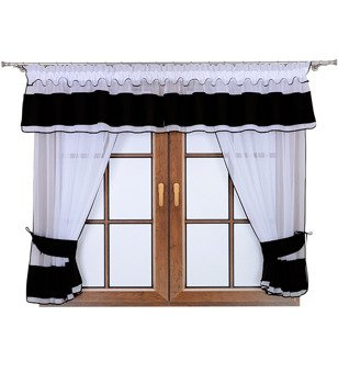 ( ilość produktów: 9 )Komplet 2 firany z podwiązką i lambrekinem Lamia czarny