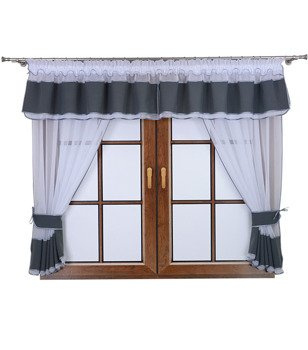 Komplet 2 firany z podwiązką i lambrekinem Lamia ciemno szary