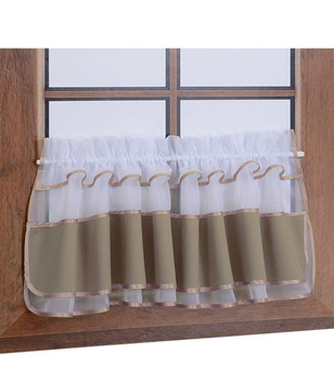 ( ilość produktów: 42 )Zazdrostka z woalu i tkaniny matowej beżowo szara Bari z falbanką Sale S50