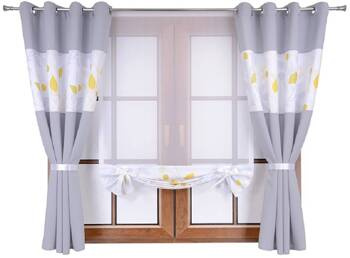 ( ilość produktów: 548 )Komplet zasłony duo liście żółte C2 panel z woalu Cindy 5