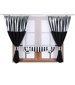 Komplet 2 zasłony czarno białe paski L1 panel z kokardkami Rubi IV