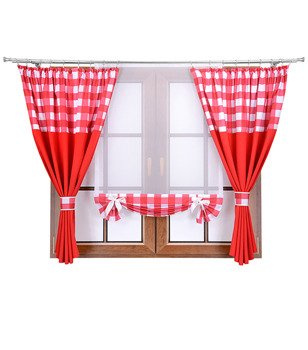 Komplet 2 zasłony czerwona kratka M1 panel z kokardkami Rubi IV