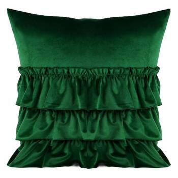 Romantyczna poszewka welurowa aksamitna z trzema falbanami butelkowa zieleń