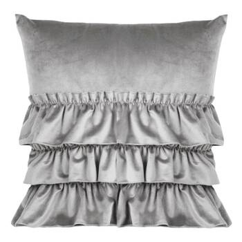 Urocza poszewka welurowa aksamitna z falbanami na poduszkę jasno szara