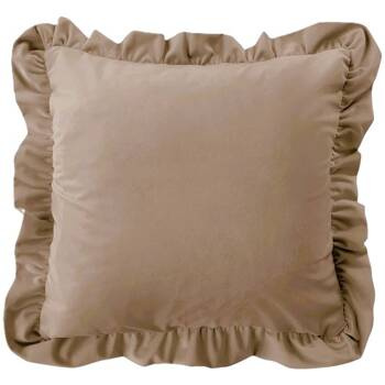 Urocza poszewka welurowa aksamitna z falbanami na poduszkę pudrowy róż