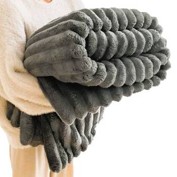 Gruby koc wytłaczany wzór efekt 3D narzuta pled na łóżko kanapę miękki szary