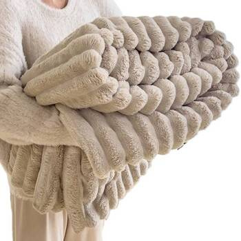 Gruby koc wytłaczany wzór efekt 3D narzuta pled na łóżko kanapę miękki jasny beżowy