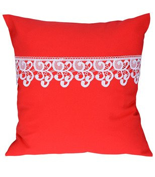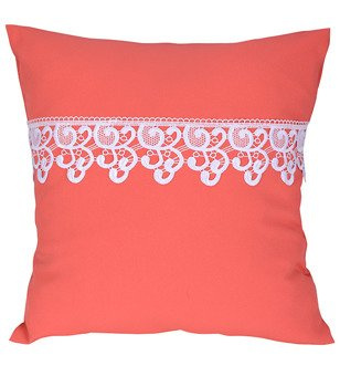 Poszewka z tkaniny matowej ozdobiona gipiurą brzoskwiniowa