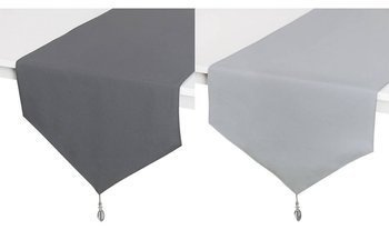 Ozdobny szary bieżnik z pluszowymi pomponami