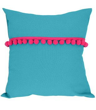 Poszewka matowa ozdobiona czarnymi pomponami słonecznie żółta