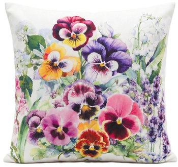 Poszewka dekoracyjna w kwiaty bratki wzór do salonu