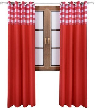 Zasłona czerwona matowa duo kratka Rubi 2 wzór M1