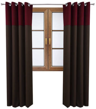 Stylowa zasłona duo gorzka czekolada z pasem na górze bordowym Massa