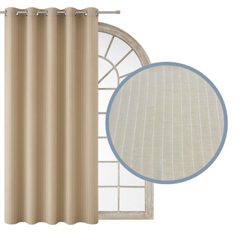 Zasłony z naturalnego lnu w prążki lniana zasłona jasny beżowy ecru len w paski