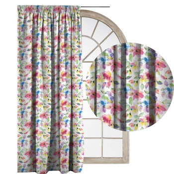 Zasłona Glam aksamitna welurowa ecru w malowane pastelowe kwiatki G26 welwet