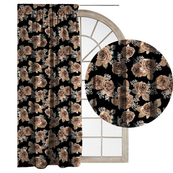 ( ilość produktów: 42 )Zasłona Glam aksamitna welurowa czarna w eleganckie beżowo złote róże G43 welwet