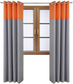Stylowa zasłona duo jasno szara z pasem na górze pomarańczowym Massa