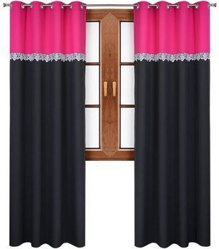 Zasłona gładka matowa trio Sally ciemno różowa z czarnym