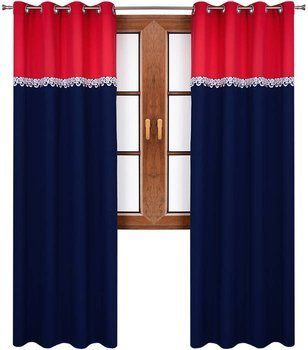 Zasłona duo z gipiurą Ligia czerwona granatowa wzór 5