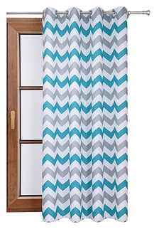 Zasłona duo jasno szara z pasem na dole turkusowym Soma