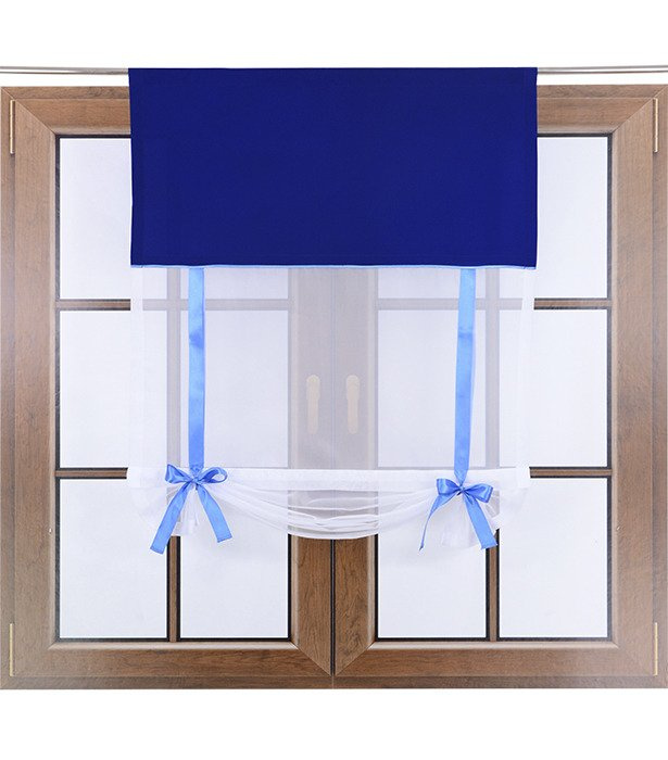 Uroczy panel ekran z woalu Vigo z kokardkami kobaltowy