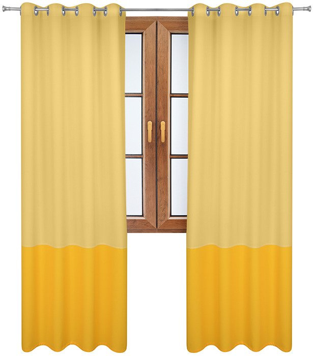 Zasłona duo jasno żółta z pasem na dole żółtym Soma