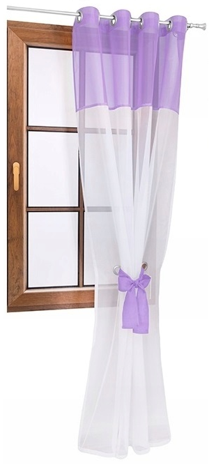 Firana dwukolorowa z woalu wiązana Lethien biało-jasnofioletowa