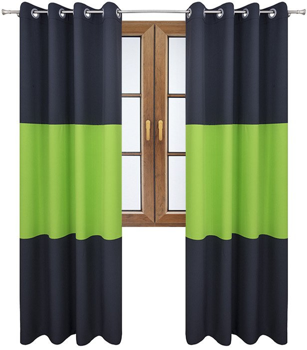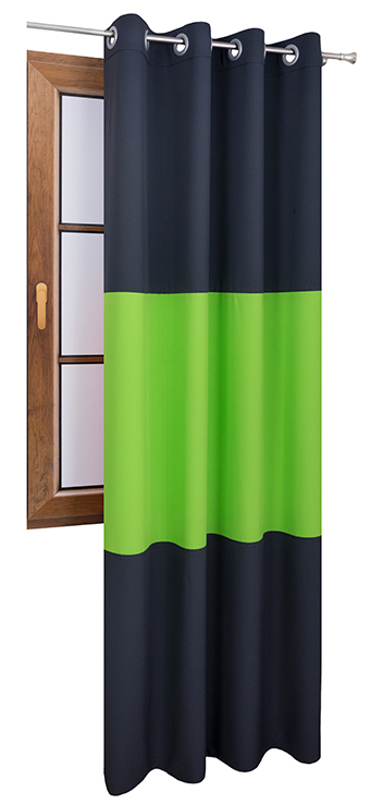 Zasłona gładka matowa trio Sally grafitowa z jaskrawym zielonym