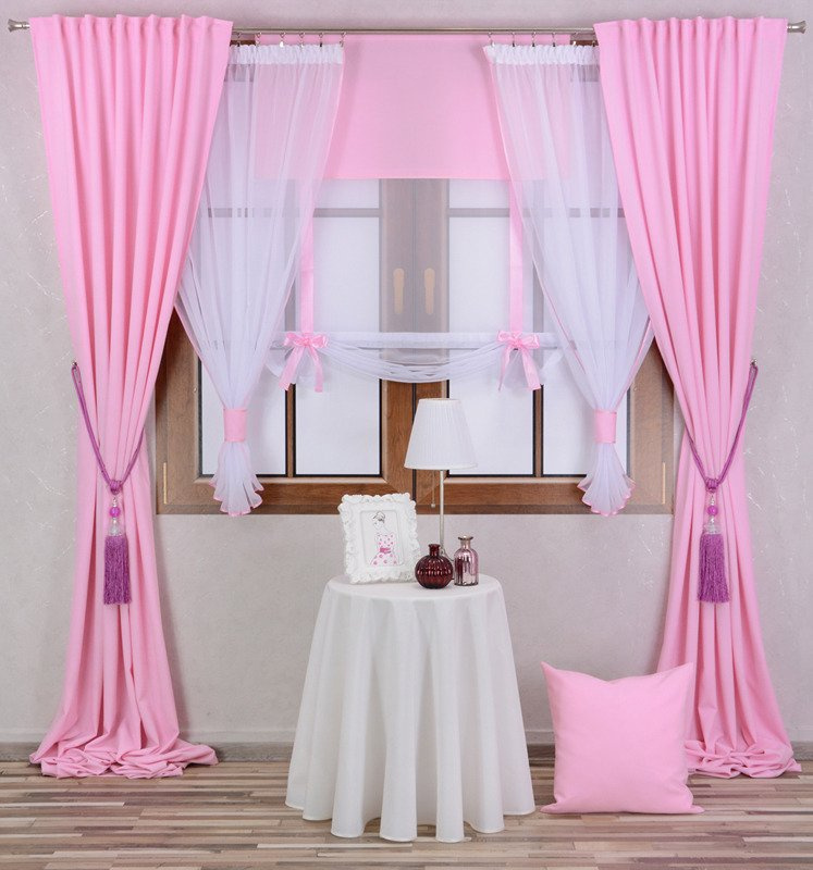 Pięknie układający się komplet stworzy niepowtarzalny klimat w każdym wnętrzu zarówno w stylu klasycznym, nowoczesnym jak i glamour. Wyjątkowa firana jest uszyta z wysokiej jakości białego woalu, brzegi zostały wykończone atłasowa lamówką, charakteru nadaje dekoracyjna podwiązka. Panel jest uszyty z białego woalu oraz jednokolorowego matowego materiału o gęstej strukturze. Ozdobiony jest dwoma satynowymi tasiemkami, które tworzą urocze kokardki, można nimi również regulować wysokość panelu. Do każdego panelu dołączamy obciążnik (gratis!), dzięki któremu doskonale się układa. Komplet jest niezwykle uroczy, idealny do salonu, sypialni, kuchni czy pokoju dziecka - wszędzie będzie wyglądać olśniewająco i nadawać blasku Twojemu domowi.