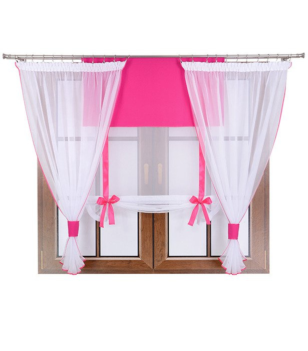 Komplet 2 firany panel z kokardkami Vigo II ciemny róż