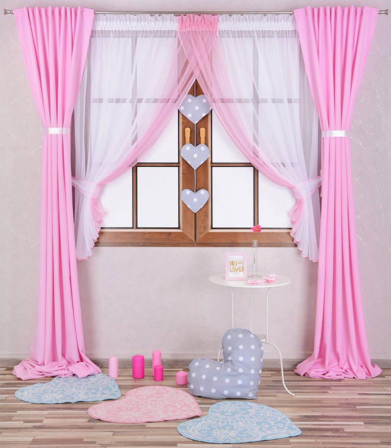 Prześliczna, urocza  firana nada niepowtarzalny klimat każdemu wnętrzu. Idealna do kuchni, sypialni czy pokoju dziecka - wszędzie będzie wyglądać olśniewająco i nadawać blasku Twojemu domowi. Firana jest uszyta z wysokiej jakości białego oraz kolorowego woalu,  brzegi firany wykończone zostały atłasową lamówką. Posiadają piękne marszczenie przy taśmie do zawieszenia. Do każdego zestawu dołączamy dwie podwiązki z woalu obszyte lamówką.