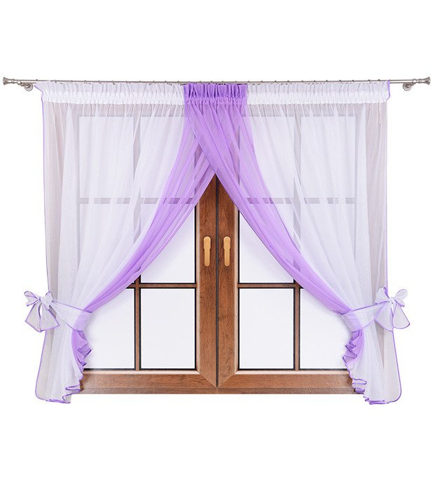 Urocza firana dwukolorowa z woalu Yumi biało-fioletowa